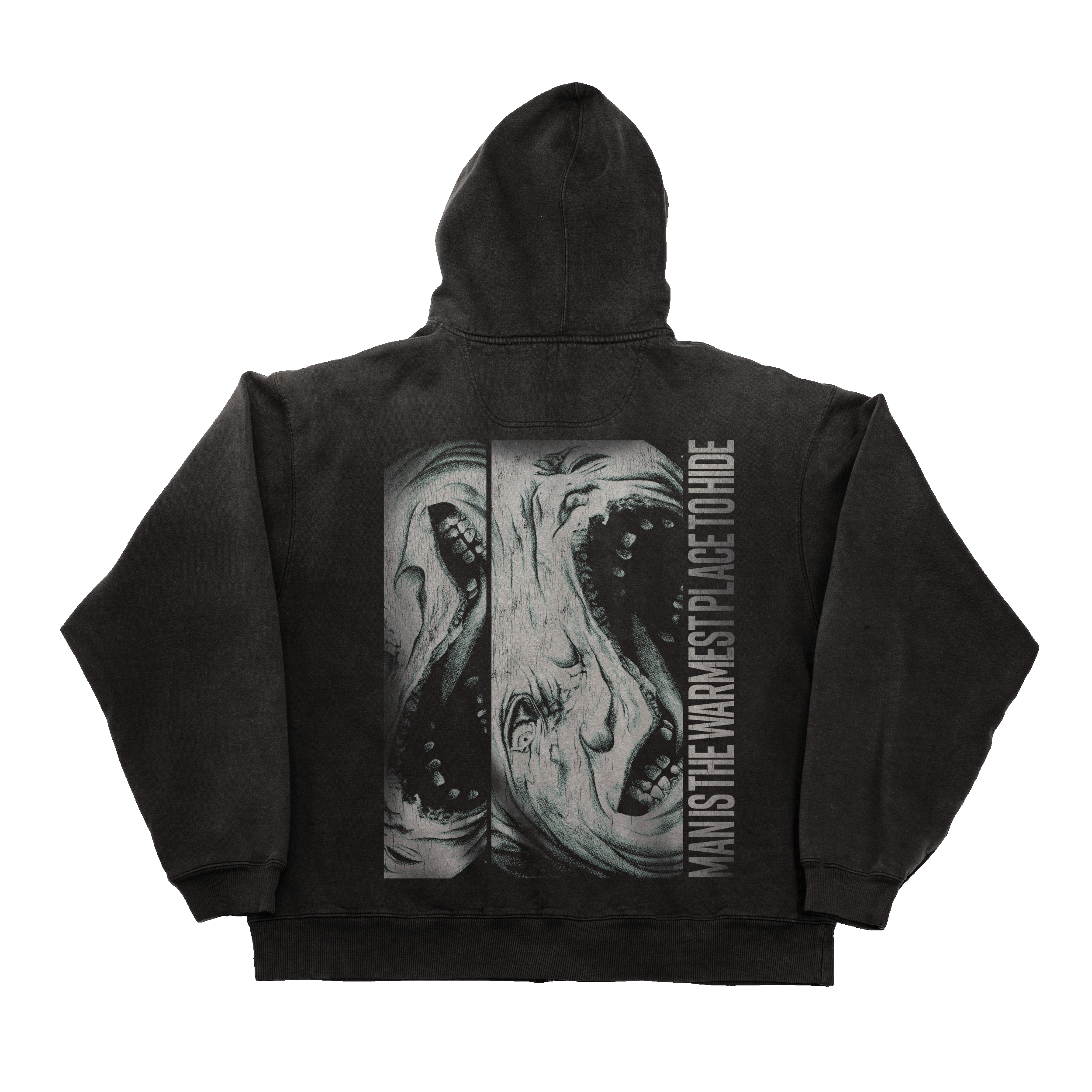 Two hoodie options, two tank top options, one t-shirt, one long sleeve, and one pant using a digital painting inspired by art from John Carpenter’s The Thing (1982).